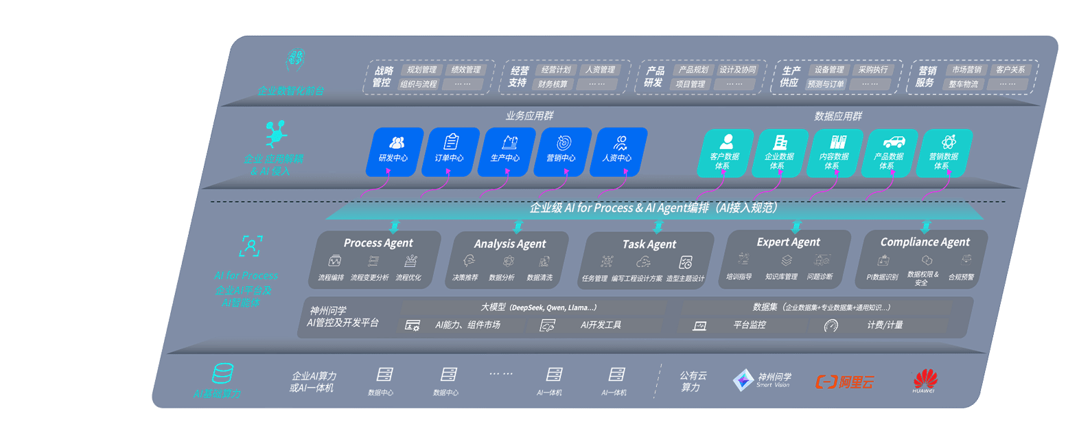 端到端的一站式AI工作空间深度融合了从企业战略规划到日常经营的全流程业务板块,,,定向解决车企内部领域多、、部门多、、、链条长、、、场景碎片化等难题,,支持车企快速构建以AI为核心的生产力写作体系,,,,实现任务执行与AI能力的无缝集成与交互